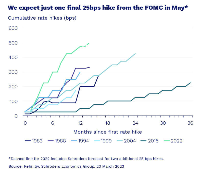• The Federal Reserve increased its policy rate by just a quarter point in March following financial market turmoil, rattling stocks and causing a jump in bond market volatility