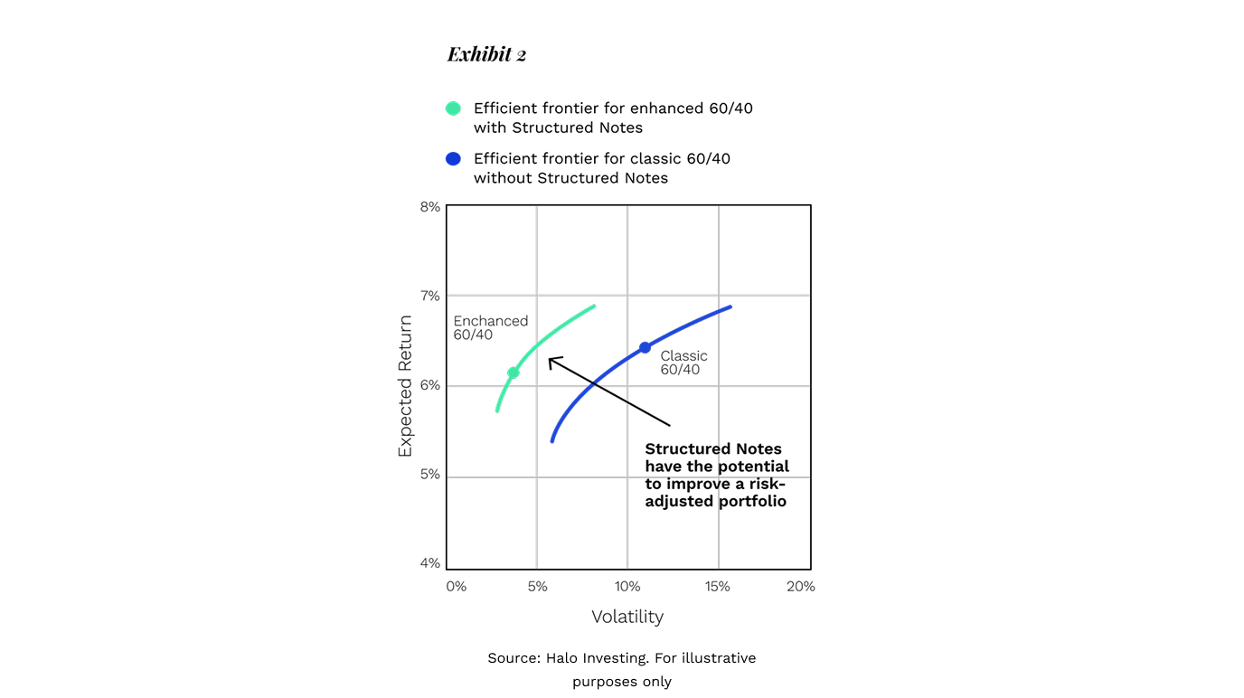 When complementing existing asset allocation frameworks, Structured Notes make it possible to build portfolios using tried-and-tested risk management techniques with similar risk characteristics to traditional portfolios, but with the potential for improved returns.